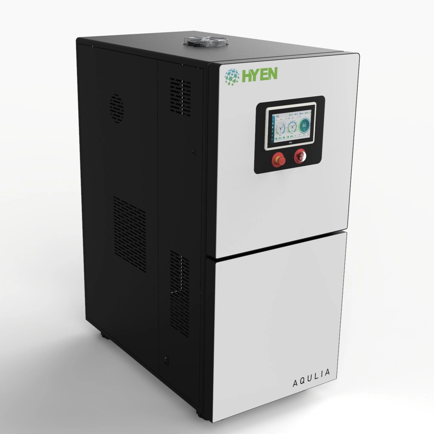Each AQULIA unit integrates a hydrogen generator, water reservoir, and a gas purification system, offering a compact and fully self-contained solution.